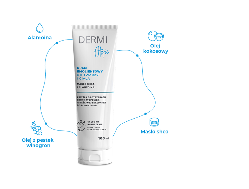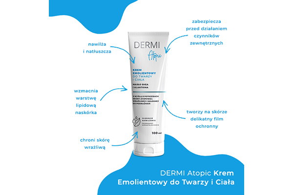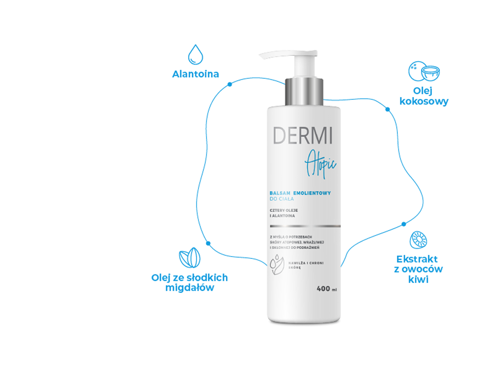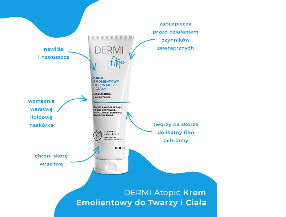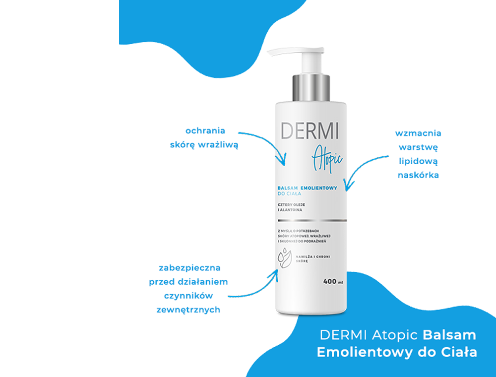 Poznaj DERMI Atopic – dermokosmetyki dla niemowląt, dzieci i dorosłych, które łączą pielęgnację z czułością - już od 1 dnia życia. Delikatne formuły koją i sprawiają, że codzienna pielęgnacja staje się chwilą bliskości – bo miło jest dbać, razem z DERMI.